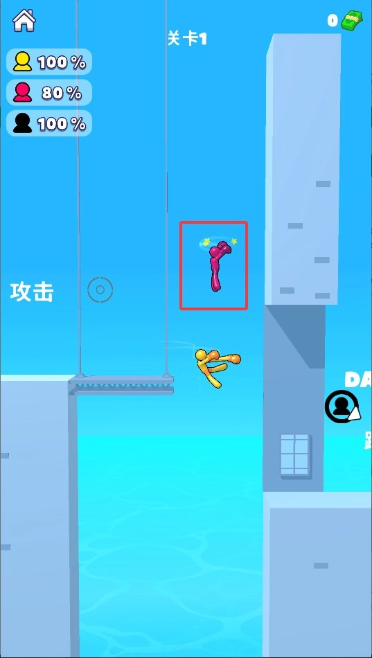 1、游戏开始后,用手指滑动屏幕来控制火柴人移动,通过灵活的走位躲避敌人的攻击,与此同时留意并把握最佳的反击机会。