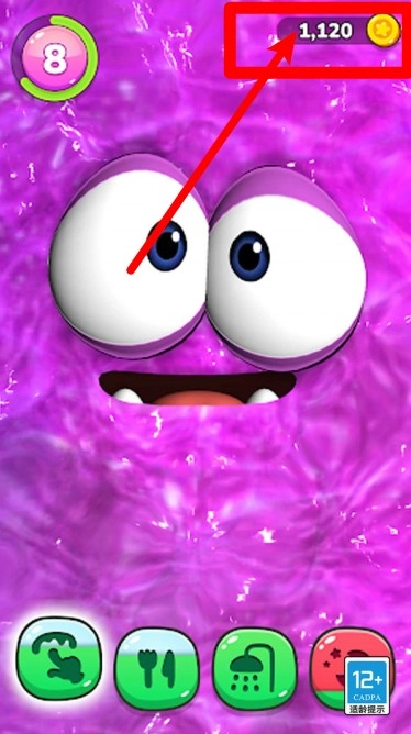 1. 画面右上方展示着当前的金币总数量,金币能够用来购买食物、装饰物品以及解锁各项功能,是照料史莱姆过程中十分重要的资源。