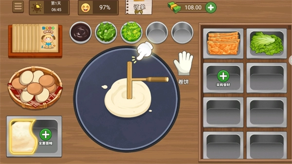 随着游戏进程的推进,试着去创新煎饼的品类与口味,以此来满足顾客多种多样的需求。