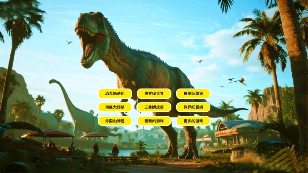 运用高清建模技术构建出地形多样、生态繁茂的恐龙岛屿,岛上的每一处细节都生动逼真。