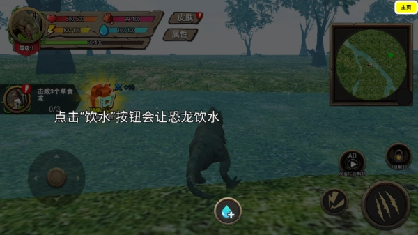 找到水源后点击互动按钮补充恐龙水分。