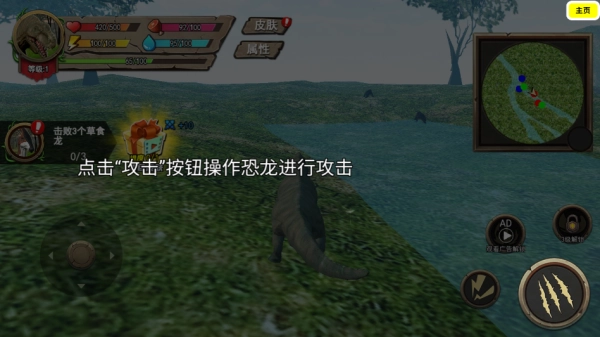 发动攻击击败其他恐龙获取进化点数。