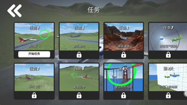 像图里展示的那样,我选了任务模式并进入第一关,现在得依据任务提示把飞机开到指定位置才能通关。