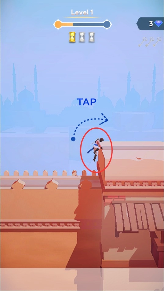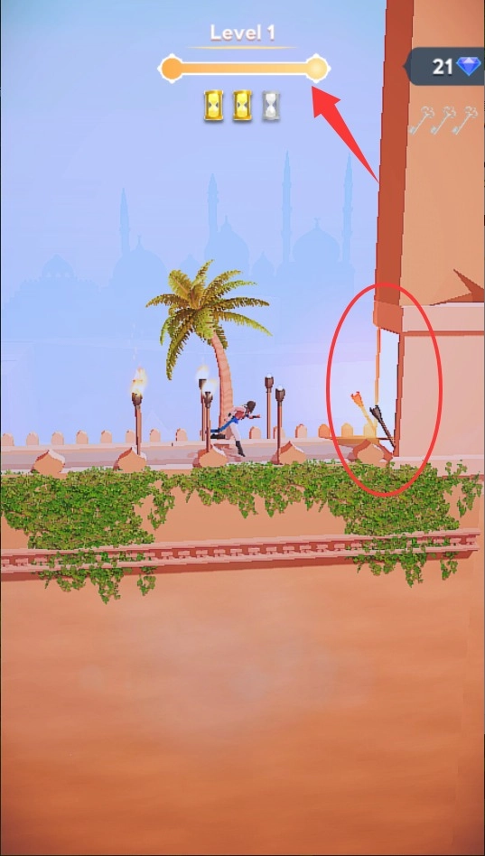 1、游戏开始时,先点击跳跃键来操控角色跨越障碍,要留意掌控起跳的时机,防止踩空而坠落。要是操作出现失误导致角色从平台跌落,就马上运用背包中的绳索道具,将角色拉回到安全的区域。
