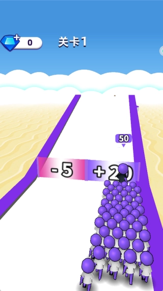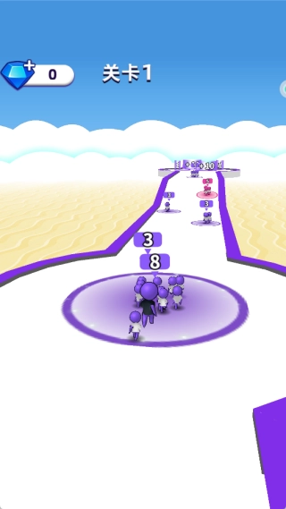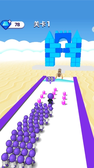 滑动屏幕操控小人冲刺,在道路上寻找其他小人并将他们纳入队伍,以此让队伍人数迅速增加。