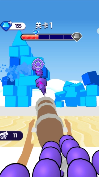 到达终点后可以架设大炮,瞄准并摧毁前方的障碍物就能解锁奖励,为跑酷过程画上完美的句号,增加闯关的成就感。