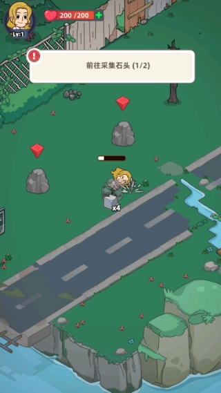 玩家需要收集周边的石块,积累到足量的石块后就能打造新工具,进而加快采集效率。