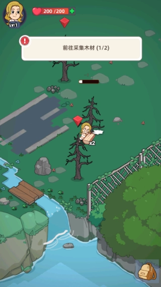 找到树木后就可以砍树,玩家能快速获取木材,用木材可以建造房屋。
