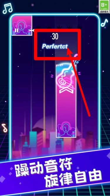 2.精准敲击音符:音乐响起后,跟着节奏点击掉落的音符,尽量让节奏保持连贯不中断,完美的连续点击能显著提高得分,从而获得S级评价。