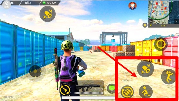 1.战斗按钮操作:画面右下角的按钮可用来开火、跳跃和使用道具,是战斗时的主要操作区。