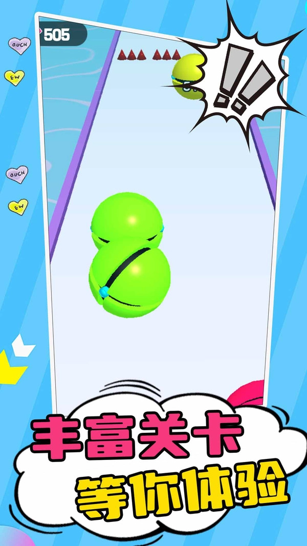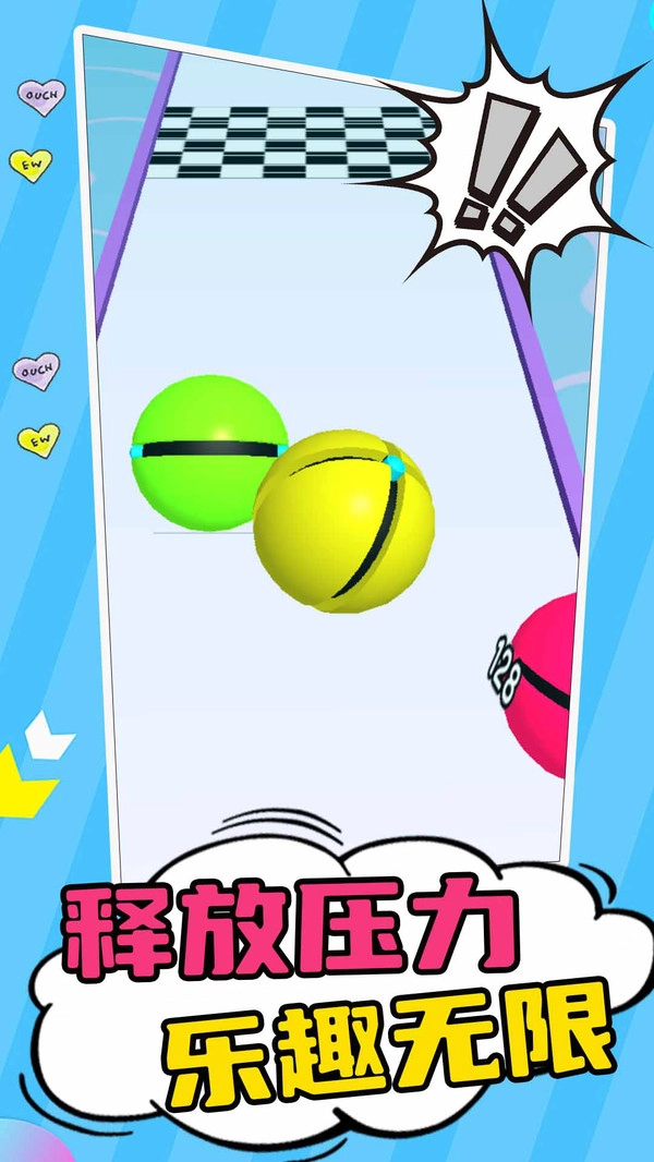 2. 借助灵活的操作,玩家能操控小球在赛道间自如弹跳,避开重重障碍,吞食其他小球完成精彩进化,使小球的体积持续增长。