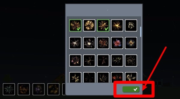 2. 在烟花样式列表里挑选你钟爱的款式并点击勾选,确认无误后,就能把该样式应用到实际燃放的展示动画中。
