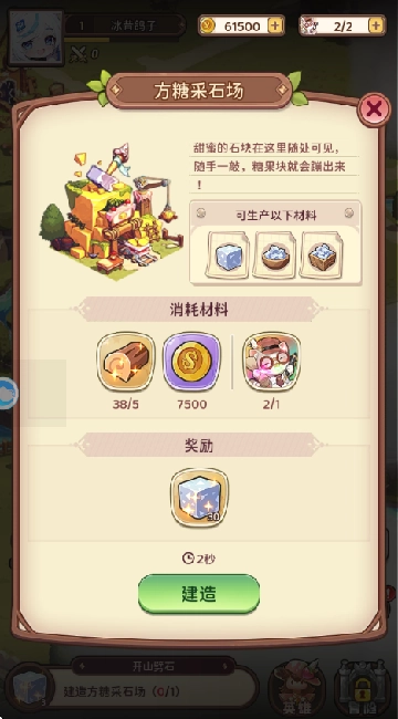 在糖果人王国里,玩家也能开展建筑建设与经营养成的玩法。当建筑物成功建成后,玩家就能领取到丰厚的奖励。