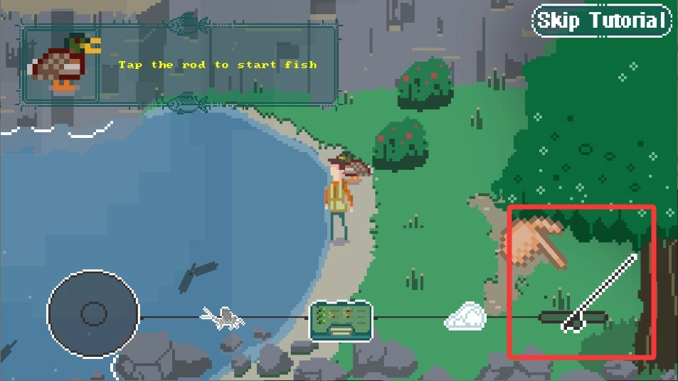 1、别具一格的像素艺术风格,巧妙糅合了钓鱼的静谧与冒险的快感。简洁却富有巧思的画面呈现,烘托出惬意自在的垂钓氛围。