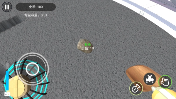 玩家可以自由挖掘周边的地面,挖掘时会随机出现各类物品,需要将这些物品收纳到背包里。