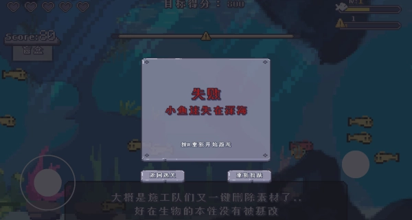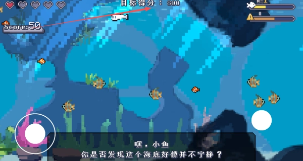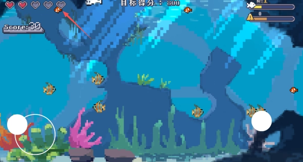 操作得足够灵活才行,要是在躲避大鱼的追咬或者碰撞过程中把血量耗光了,这局挑战就算失败了。