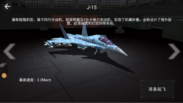 随后玩家可以点击画面左右两侧的箭头按钮,切换不同型号的战机去执行不同的任务。