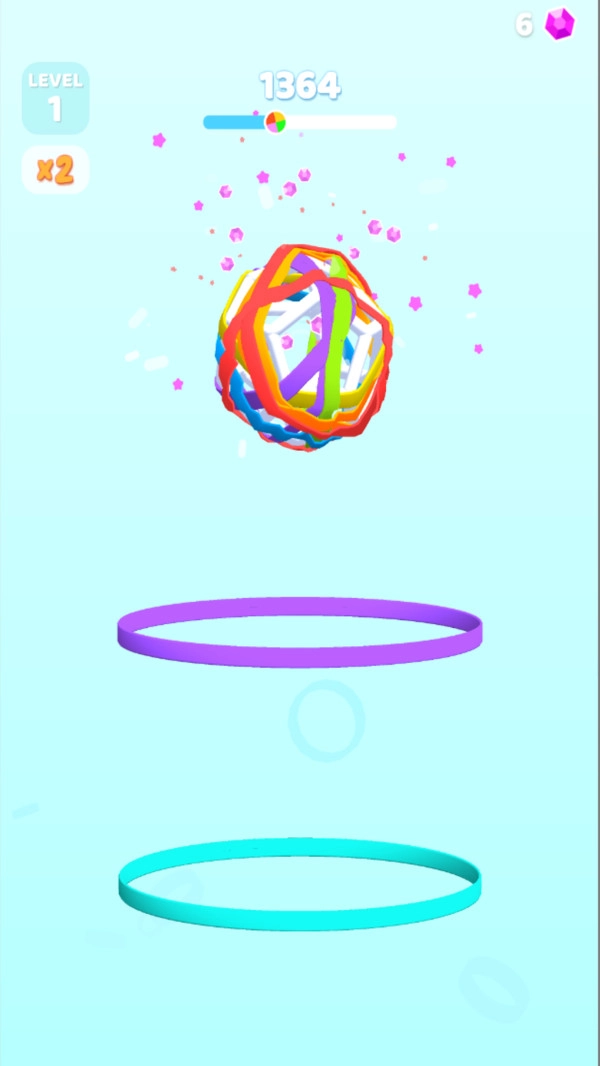 2、玩家借助皮筋完成弹射操作,若能圈住游戏界面上方的球,即可累计分数,圈中的球越多,得分就越高。