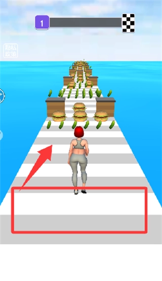 核心操作是通过点击屏幕来控制女孩进行跳跃与下蹲,从而避开途中的高热量食物障碍物以及突然出现的地面陷阱。