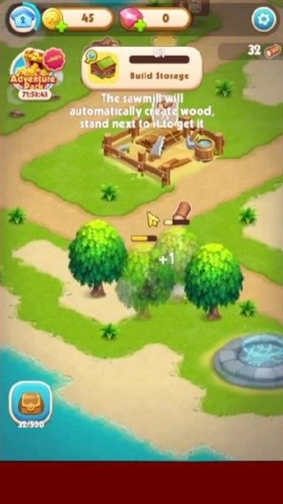 进入游戏后,先从基础资源的采集着手,之后再一步步修建木屋、仓库这类核心建筑。
