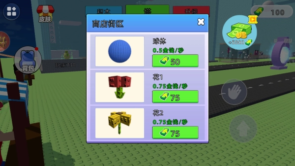 在商店街区,你能够购买球体和各式各样的装饰品,以此提高塔楼产生的收益。