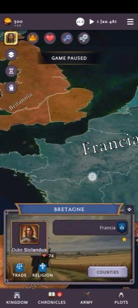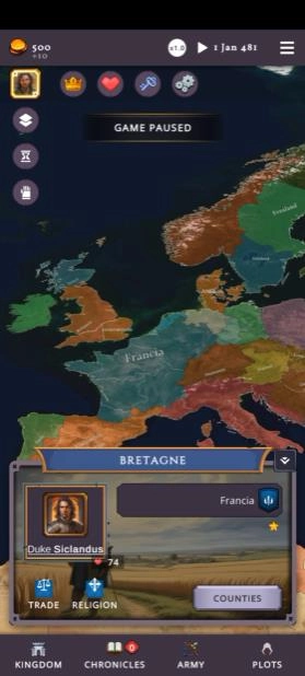 3、构建了复杂的权力体系与家族谱系设定,真实模拟封建制度及血脉传承机制。进入游戏后,你需要挑选自己的角色以及对应的背景国家,像法兰西、英格兰或者维京部落都可以作为选择项。