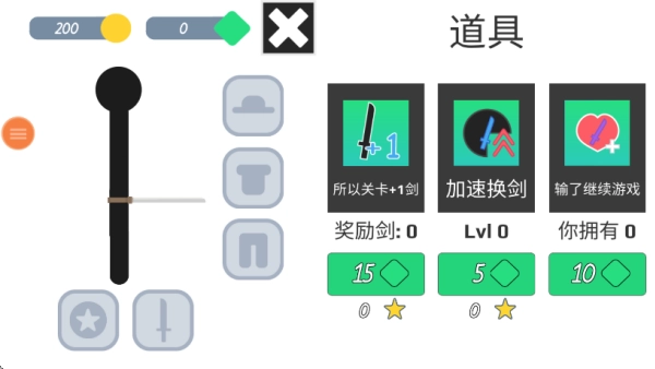 进入关卡后,点击画面右侧的按钮就能让火柴人的手臂摆动起来,等摆到合适的位置时松开右侧按钮,就能完成武器的投掷了。