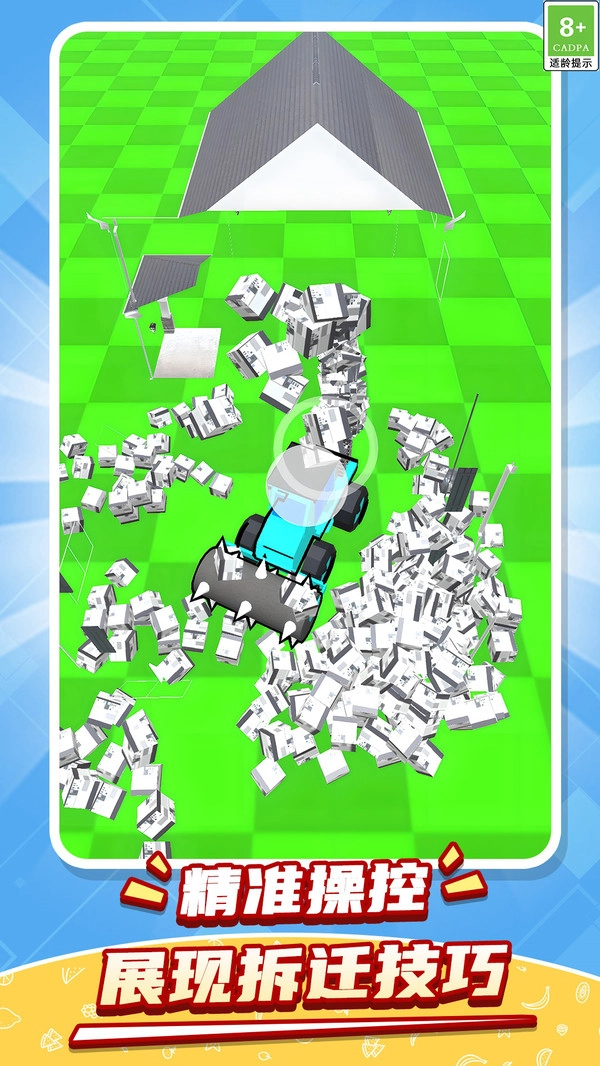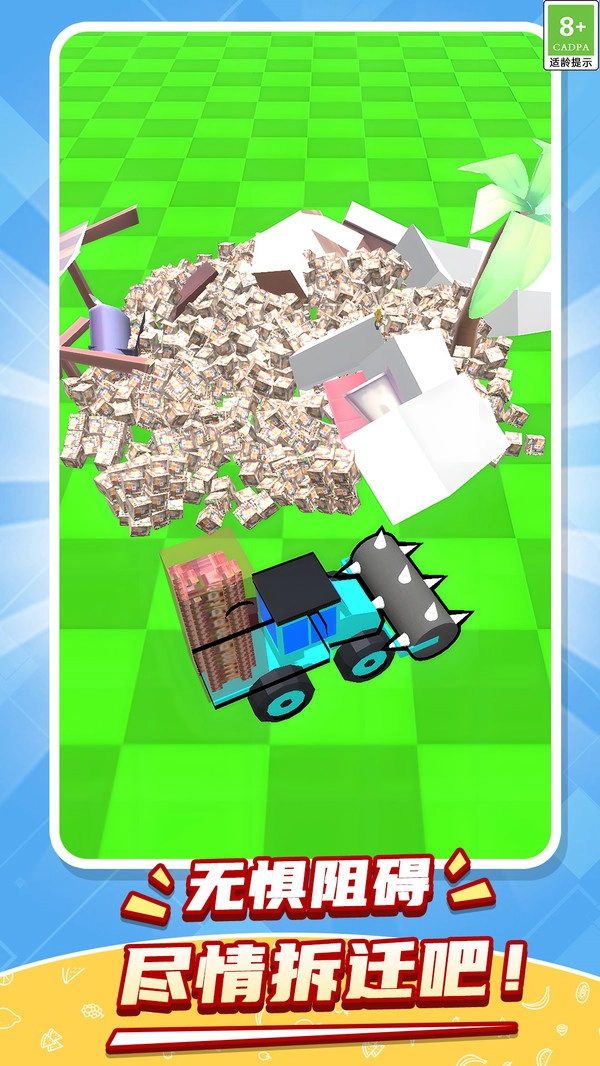 3.玩家能够借助破坏房屋来获取金币,以此解锁更强大的车辆与升级工具,进而提高破坏效率。