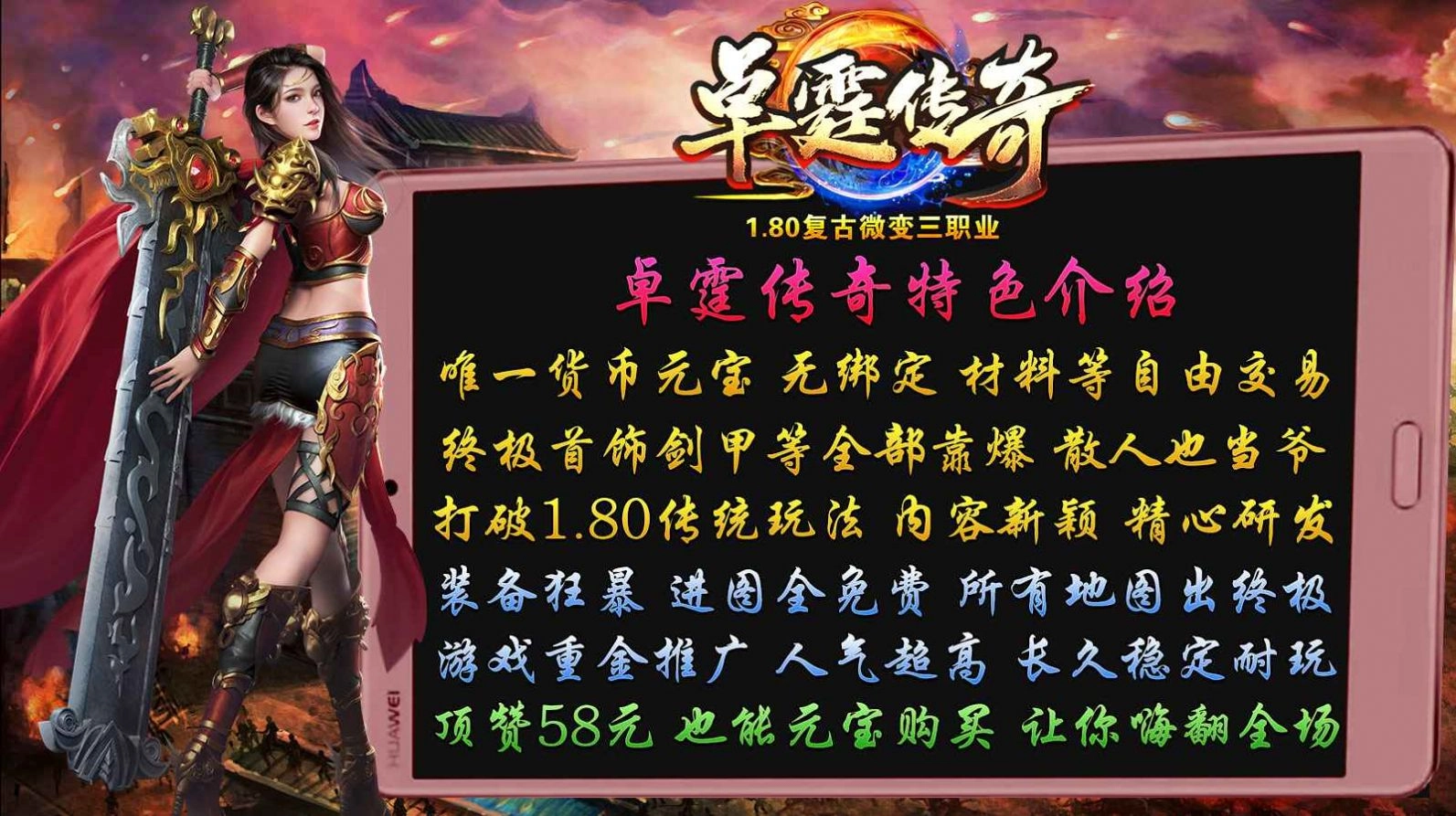 《卓霆传奇》是一款充满热血激情的传奇对抗冒险游戏,邀你开启在线传奇的热血征程!选择强力职业,在打怪升级中不断提升实力;这里有任务、刷怪、PK等海量丰富的特色玩法,让你畅享激烈战斗的快感。还能与好友携手并肩,共同踏上冒险之旅,更可参与震撼的跨服大作战,感受热血沸腾的竞技体验!