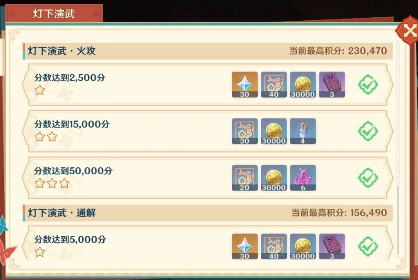在原神5.3版本里,热闹依旧的海灯节又一次拉开帷幕,备受关注的灯下演武活动也已热烈开启。这次挑战需要玩家根据不同的增益效果灵活搭配阵容来完成战斗,以今日的“火攻”主题为例,玩家得分别将分数提升至2500分、15000分和50000分,方可解锁相应的丰厚奖励。