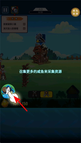 按照红色箭头的指示操作,点击对应的卡片就能召唤出更多单位,指挥这些单位奔赴资源点进行采集,以此积攒发展过程中需要用到的各类物资。