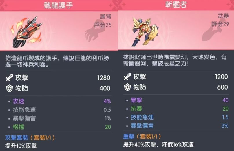 装备推荐:攻击,生命,暴击,爆伤等套装。