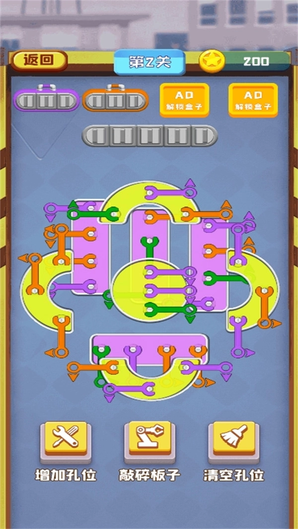 2、万能扳手能适配所有规格的螺丝,建议在关卡后期遇到僵局时再使用它;