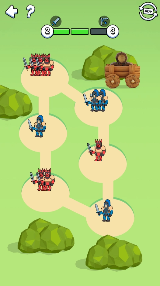 3、人数是决定战斗胜负的唯一因素,拥有更多兵力的一方必然获胜,兵力处于劣势的一方则会战败。