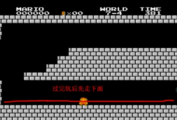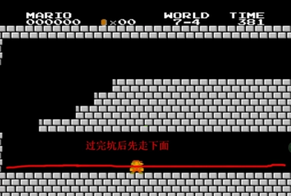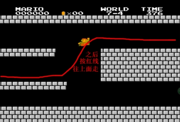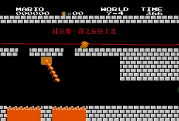 1、通关1-1关卡后到达1-2关卡,借助第二个移动梯走最上方的路。