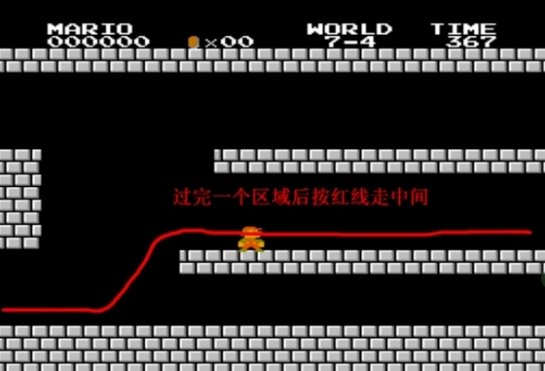 2.完成一个区域后,按照红线指示走中间,如图所示。