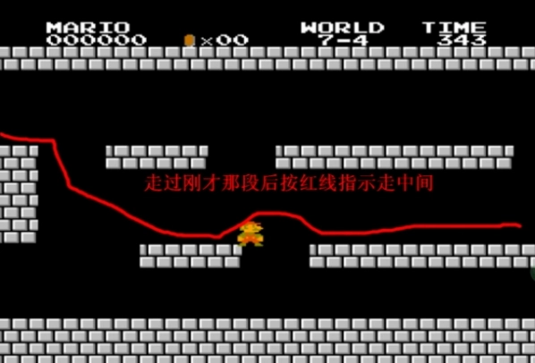 5.穿过刚才那段后,按照红线指示走到中间,如图所示。