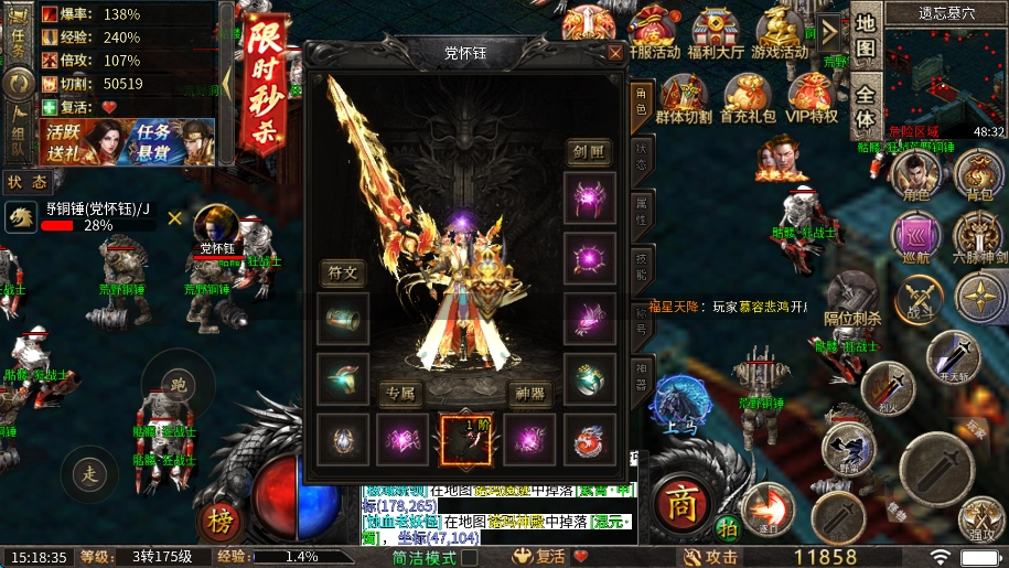6、装备始终是提升战斗力的最佳途径,所以需要玩家不停的刷怪,以获得相配应的武器装备。