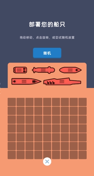 2、战舰游戏:可自由布置舰船,拖动实现移动,点击完成翻转,也能尝试随机摆放。