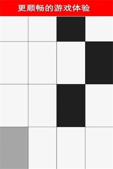 游戏开始前,手指要放在第二行的位置。按照图示操作,点击第一块黑块后游戏就正式启动了。之后玩家得让手指停留在第一行,准备接住接下来出现的第二块黑块。