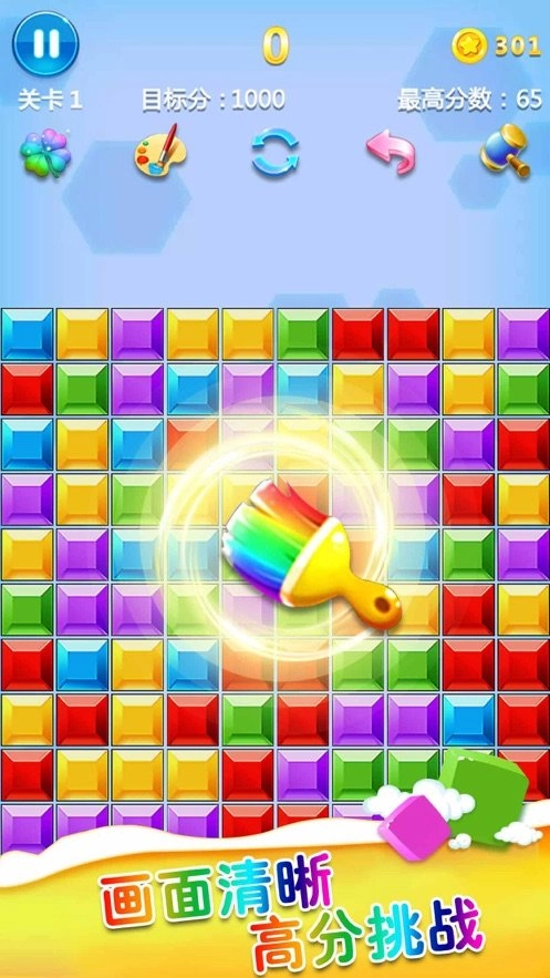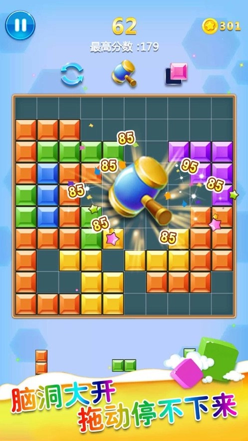 1、打开脑洞,精心谋划,逐步思考,用最少的步数消除画面里更多的方块。