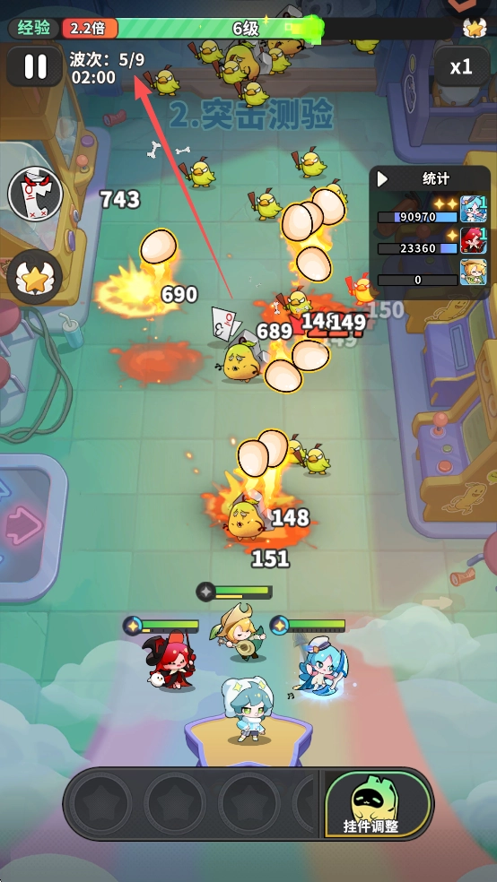 8、通过查看左上角的信息,能够知晓对局的进展情况,要在boss战来临之前尽快提升精灵的伤害