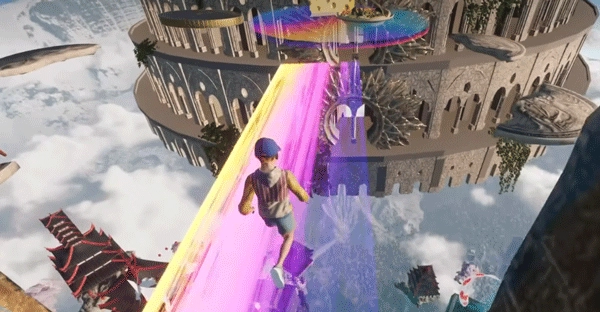 4、通过假平台之后,前方的彩虹桥只需一直往前跑就能顺利通过,过程十分简单。
