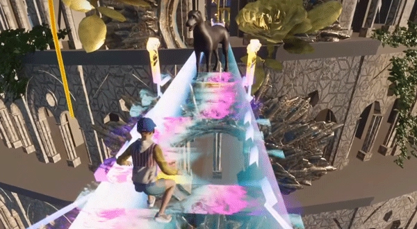 1、首先经过东方世界就能看到彩虹桥,上桥后会遇到一条狗,靠近它时狗就会消失。