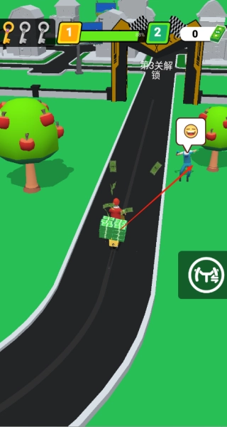 1、进入游戏后,只需持续点击屏幕就能操控外卖员向前移动,松开手指屏幕便会暂停,整体操作十分简单,很容易掌握。