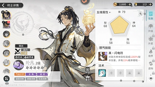 1、叶凡是目前游戏中的最强角色,可以轻松击败高属性的敌人。