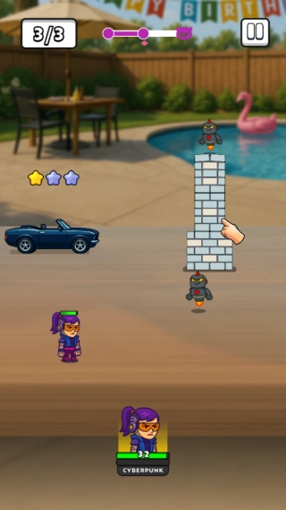 1.游戏创新性地将“拆迁”与“战斗”结合,先破坏后战斗的模式让闯关更具层次感,既满足破坏欲,又能体验策略对战的乐趣。