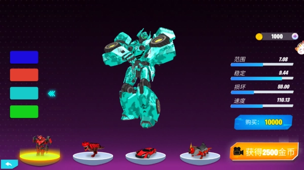 进入游戏后,先领取每日签到奖励,再从机甲、恐龙、飞机、跑车等形态中挑选出你最喜欢的那个。