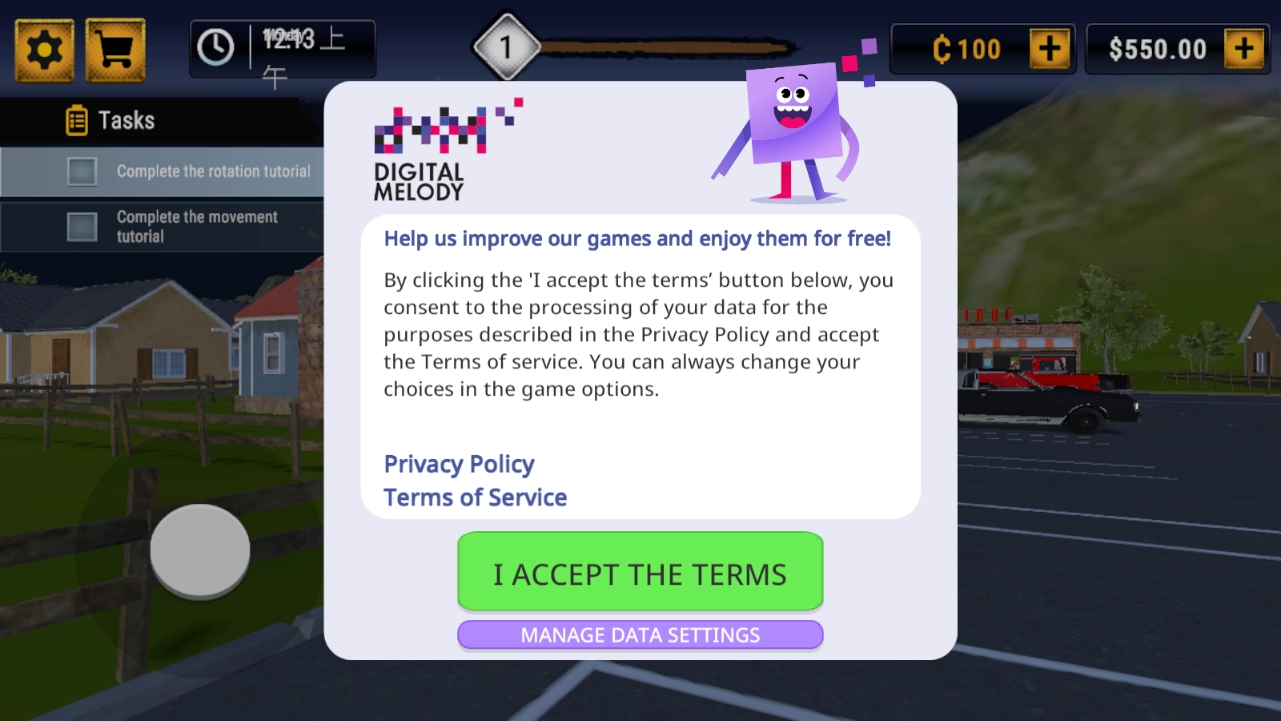 1.进入游戏后需要接受隐私条款才能够继续游戏。