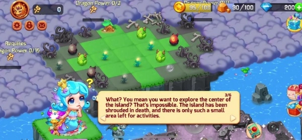 1、探索神秘萌龙岛,通过合并魔法解锁岛上的各种奇迹和秘密。
